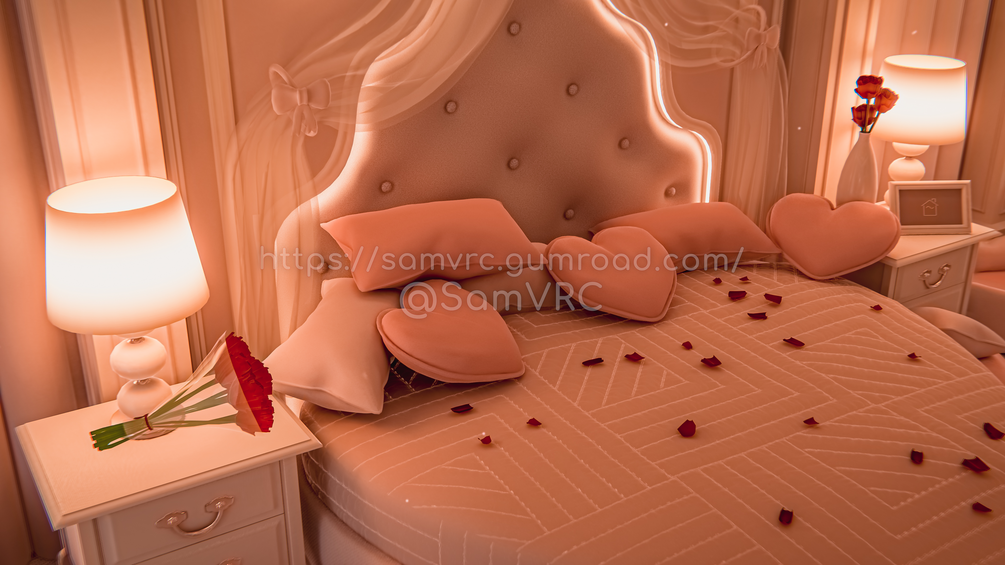 A Valentines themed space perfect for spending with the one closest to you, this is the 5th world release from VRChat World Creators ~Sam x Camille as part of "Soft Series", and a special collaboration with avatar creator Cupkake for Feb 2023! Check out Cupkake's shop here, and visit the avatars featured in the world: